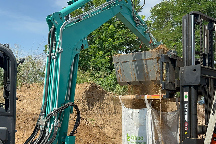 But how does the screening bucket fit into all this? The CDS 10 screening bucket was used for precisely this purpose. Thanks to its high productivity, it was possible to screen all the earth needed to cover an area of 1000 square meters of a shed with an 8 cm layer in just a few hours. With the possibility of choosing the space between the discs according to the desired result from a minimum of 16 mm to a maximum of 60 mm, the CDS screening bucket proves to be maneuverable and suitable for excavators from 5 to 8 tons.