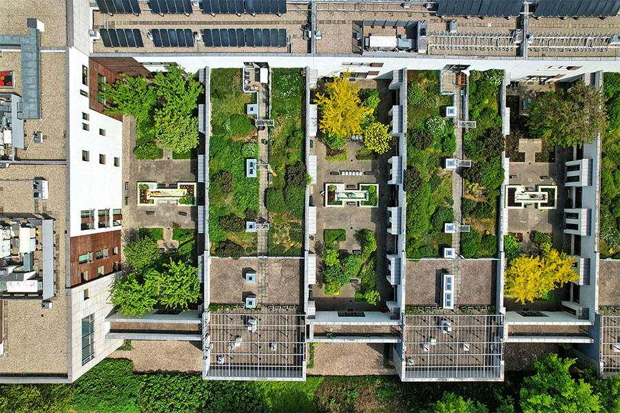 During the cold months, a green roof acts as a barrier against the cold, offering thermal insulation comparable to synthetic materials, but with a much lower environmental impact. During hot periods, on the other hand, it helps to keep the interior of the building cool, thanks to the evaporation of water contained in the soil.